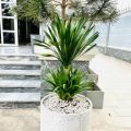 Chậu xi măng đá mài này thường kết hợp với các cây lớn dáng cao để trang trí cửa ra vào, sân vườn. Thể tích đất trong chậu thích hợp trồng các loại cây như: cây bàng Singapore, cây trầu bà lỗ, cây lưỡi hổ...