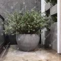 Chậu xi măng nhẹ hình tròn vát đáy này thường kết hợp với những cây lớn dáng cao để trang trí cửa ra vào, sân vườn. Thể tích đất trong chậu thích hợp trồng các loại cây như: cây bàng Singapore, cây trầu bà lỗ, cây lưỡi hổ...