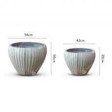 Chậu xi măng hình chum này thường kết hợp với những cây lớn dáng cao để trang trí cửa ra vào, sân vườn. Thể tích đất trong chậu thích hợp trồng các loại cây như: cây bàng Singapore, cây trầu bà lỗ, cây lưỡi hổ...