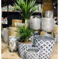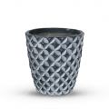 Chậu xi măng nhẹ hình nón cụt họa tiết caro thường kết hợp với những cây lớn dáng cao để trang trí cửa ra vào, sân vườn. Thể tích đất trong chậu thích hợp trồng các loại cây như: cây bàng Singapore, cây trầu bà lỗ, cây lưỡi hổ...