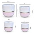 Bộ 4 chậu thân trụ bo tròn đáy sơn kiểu | Màu trắng hồng viền vàng đồng - CDC000320