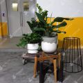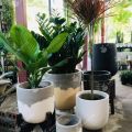 Chậu xi măng nhẹ thân trụ bo đáy này thường kết hợp với các các cây lớn dáng cao để trang trí cửa ra vào, sân vườn. Thể tích đất trong chậu thích hợp trồng các loại cây như: cây bàng Singapore, cây trầu bà lỗ, cây lưỡi hổ...