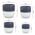 Bộ 4 chậu thân trụ bo tròn đáy sơn kiểu | Màu trắng xám viền vàng đồng - CDC000310